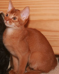 Die Augen sind groß, leuchtend und ausdrucksvoll, leicht mandelförmig und weit auseinander gesetzt. Die Augenfarbe ist rein und klar, bernsteingelb bis grün. Bei silberfarbenen Varietäten wird grün bevorzugt. Die Augenlider sind bei allen Farbvarietäten in der Farbe des Tickings umrandet (Lidstrich). |